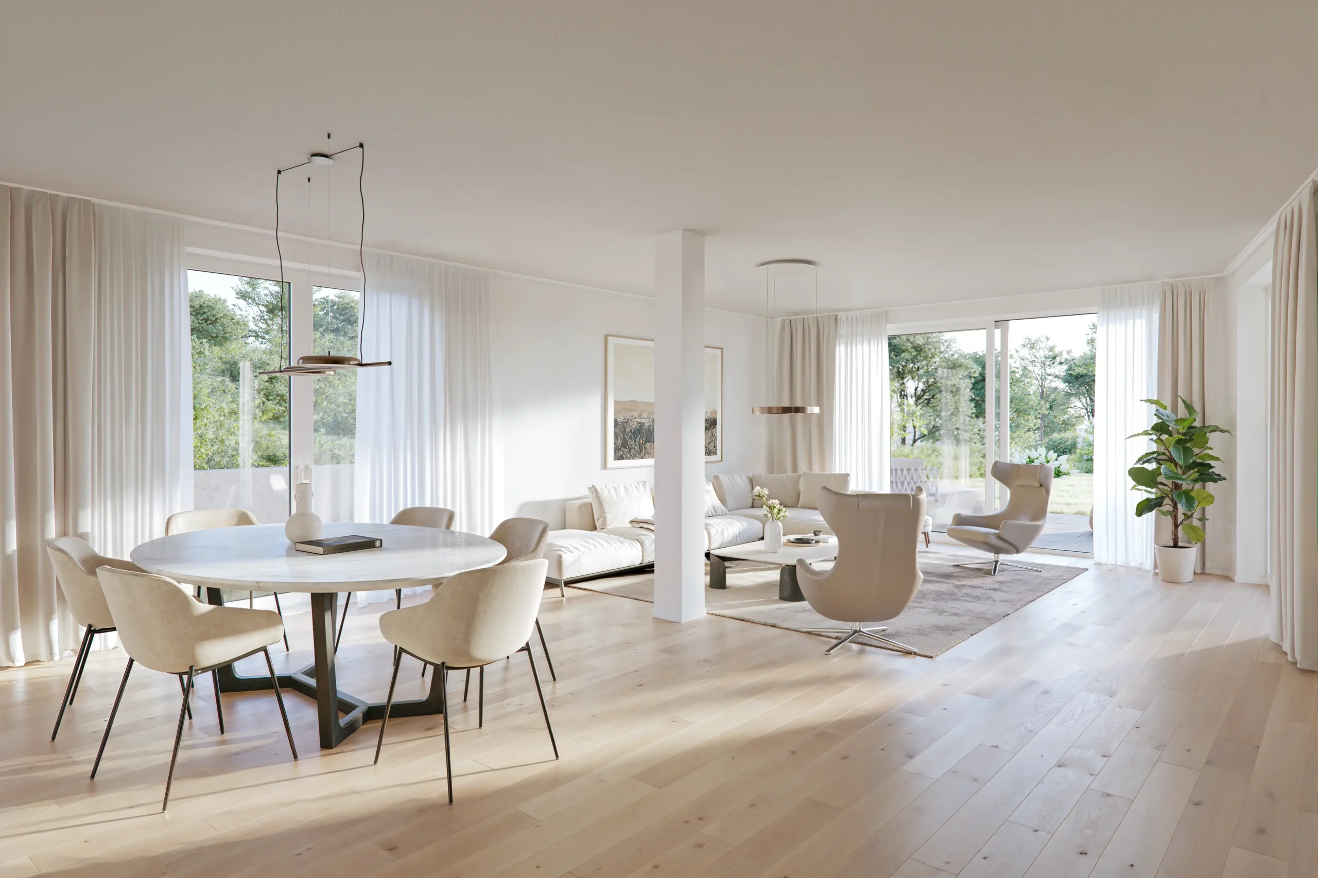 Die Garten-Wohnungen bieten Ihnen exklusive, private Grünflächen. Ein friedlicher Rückzugsort mitten im städtischen Trubel. Perfekt für Familienabenteuer, intime Gartenfeste oder ruhige Abendstunden. Die nahtlose Verbindung zwischen Innenraum und Garten erweitert Ihren Lebensraum und bringt die Natur direkt in Ihr Zuhause.